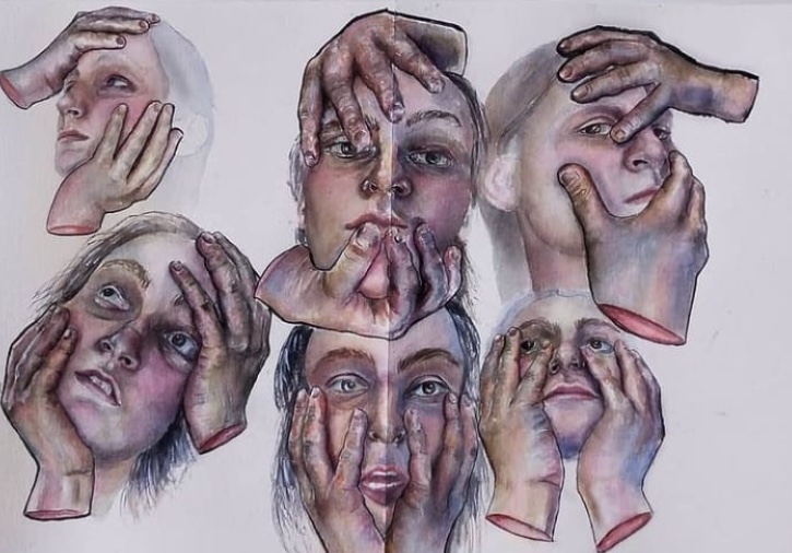 Yüzeye dokunmak, derine inerek başka bir varlığa çıkmak. Yüzeyin pürüzlerinin baskısını avuçlarda hissetmek. 2020 Mart ayında yaptığım bir çalışma. ‘Ellerinizle yüzünüze dokunmayın’ cümlesinin ilhamı ve cümlenin imkansızlığını hissetmem ile ortaya çıktı.