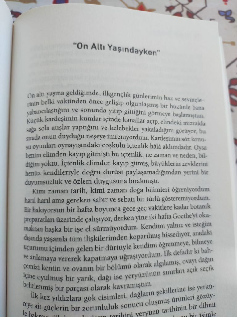 Herman Hesse ise bütün düşünsel kaynağını bir kavram üzerinde kullandığı bir kişisel tarih anlatıyor. Bazen çünkü öyle olur. Çok farklı şeyler düşündüğümüzü, hissettiğimizi zannederiz oysa ki geriye dönüp bütünsel olarak bakabildigimizde yaşamımızda belli başlı ana hatlar olduğunu görürüz. Bu biraz kim olduğumuzu, nelere rastladığımızı da yansıtan bir öykü sunar bize. Hesse tüm kaynağını sevgi kavramı üzerinden yeniden okuyor. Yer yer bana çok çarpıcı gelen düşünceleri “On altı Yaşındayken” başlıklı bölümde yaşamdaki anlamın hem hep ileriye doğru çoğalan hem de var olanı özümseyebilen bir biçimi olduğunu hissettiriyor.