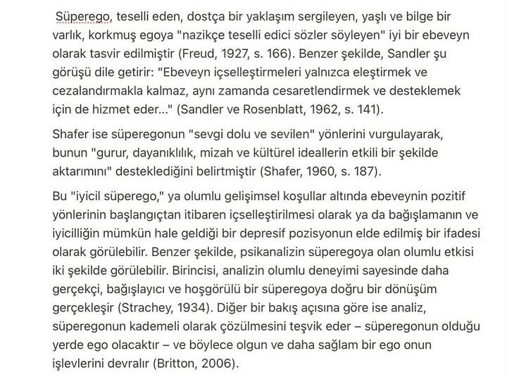 Görseldeki metin de Jeremy Holmes Superego: An Attachment Perspective isimli makaleden bir alıntı