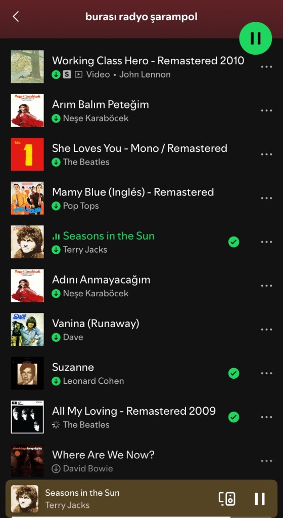 Kitapta geçen şarkıların olduğu bir Spotify listesi